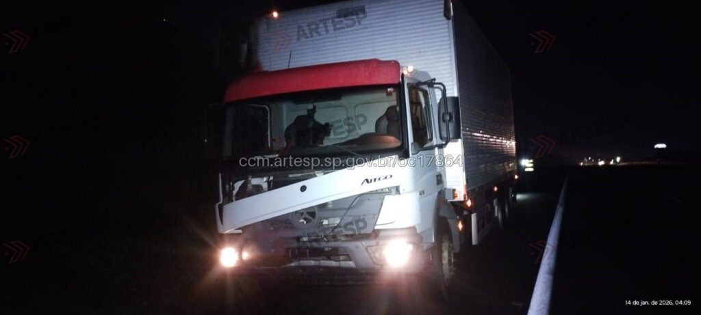 Caminhão envolvido no acidente em Limeira Artesp Um homem morreu atropelado por um caminhão ao tentar atravessar a Rodovia Anhanguera