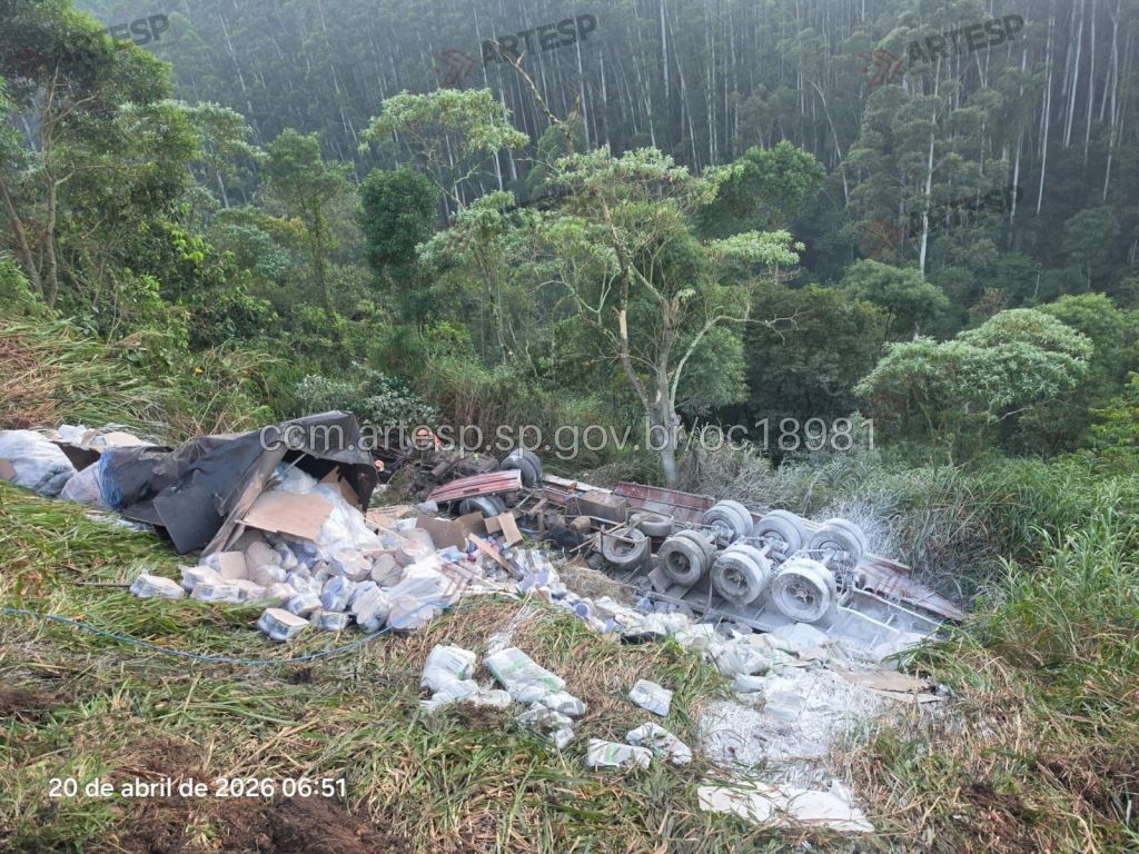 De acordo com o Corpo de Bombeiros, duas pessoas estavam dentro do caminhão envolvido no aciente. Uma das vítimas não resistiu e faleceu no local, enquanto a segunda foi socorrida em estado grave por helicóptero.