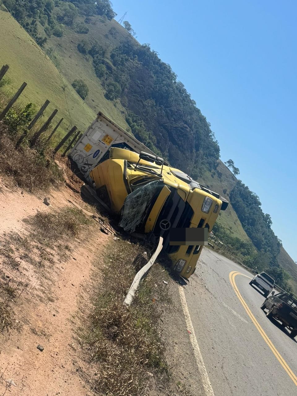 Um motorista, de idade não divulgada, morreu após a carreta que ele dirigia tombar na altura do km 12 da MG-133, em Tabuleiro, na Zona da Mata mineira, na terça-feira (30).