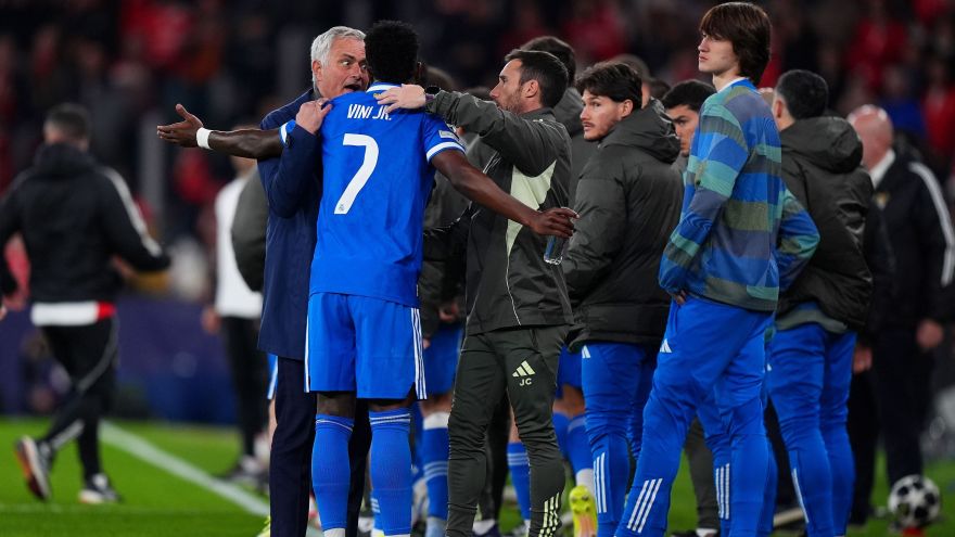 7 de 9José Mourinho discute com Vini Jr., que acusou jogador do Benfica de racismo • Angel Martinez/Getty Images