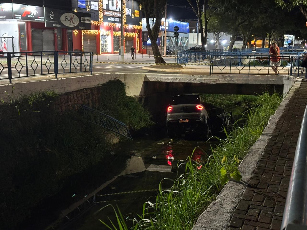 Um carro foi parar dentro do córrego do Taboão, no centro de Itu (SP), na noite de sexta-feira (26).