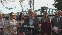 Várias dezenas de pessoas se reuniram no domingo (28) para protestar contra a decisão do presidente dos EUA, Donald Trump,
