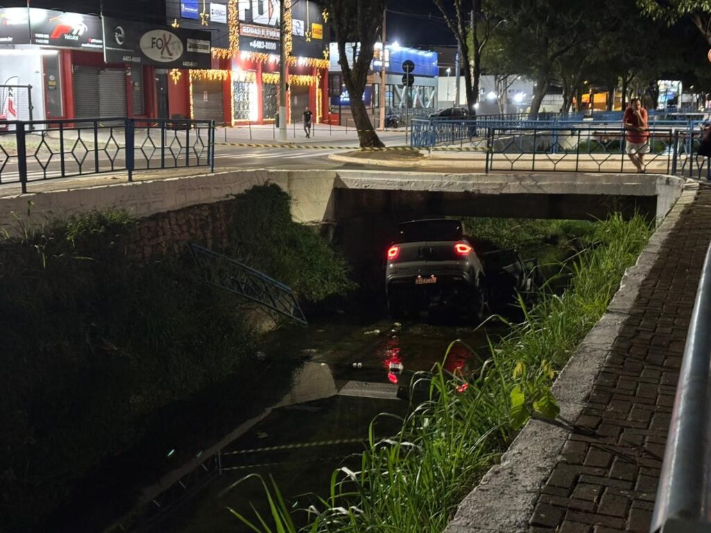 Carro derrubou a grade de proteção e caiu no córrego do Taboão, em Itu (SP) Arcílio Neto / TV TEM